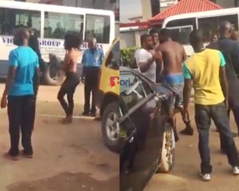 Some commercial female workers who disagreed over the payment of money after sleeping with some guys in Lagos, were filmed being attacked by the same guys as one of the girls was stripped topless.